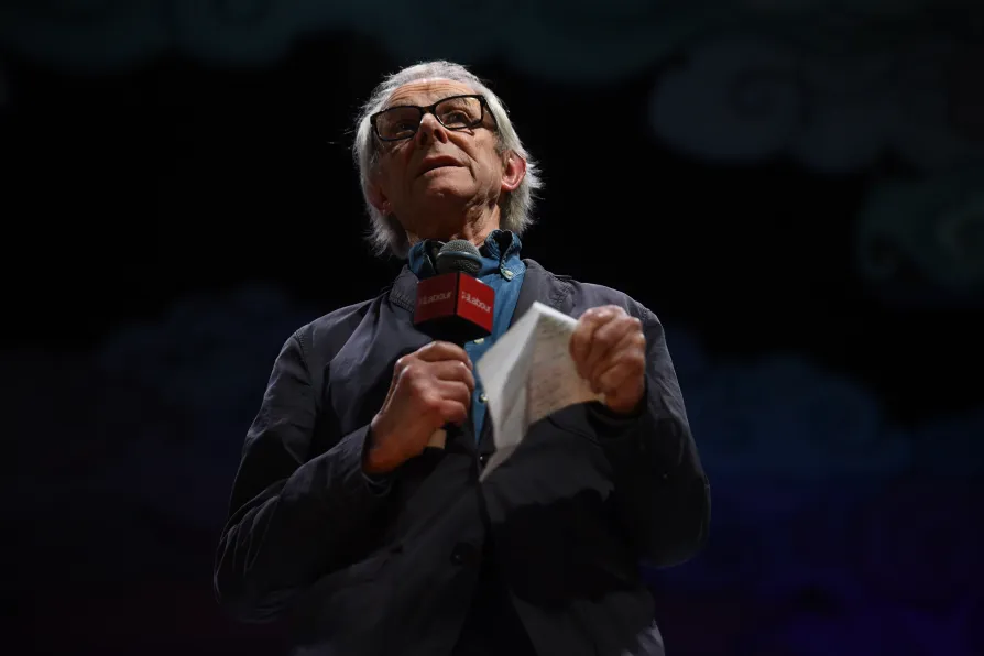 Ken Loach on stage at the Theatre Royal Stratford East in London