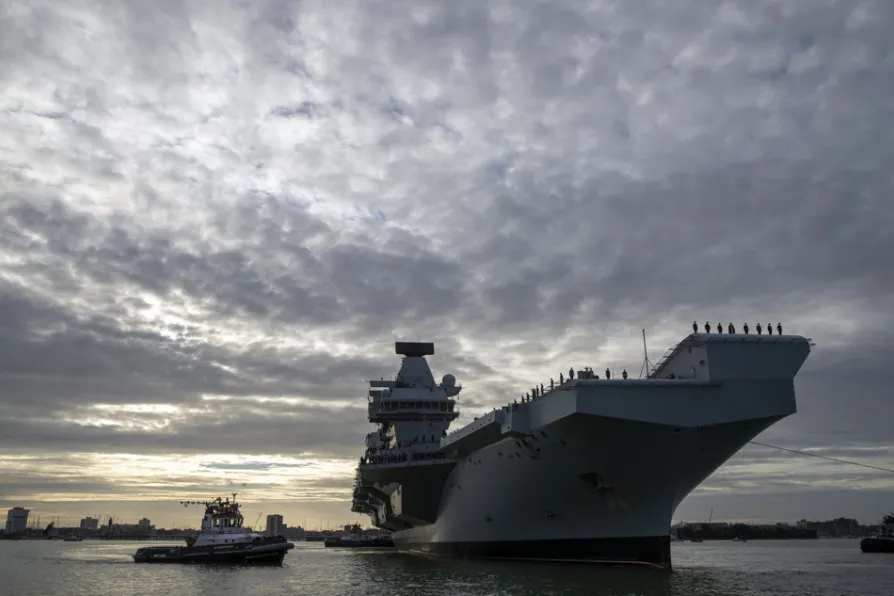 The Royal Navy aircraft carrier HMS Queen Elizabeth arrives in Portsmouth, December 2018