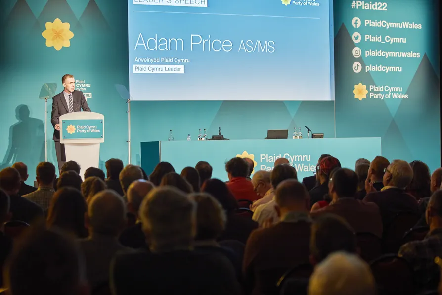 Plaid Cymru leader Adam Price makes a speech at the party’s annual conference [Plaid Cymru]