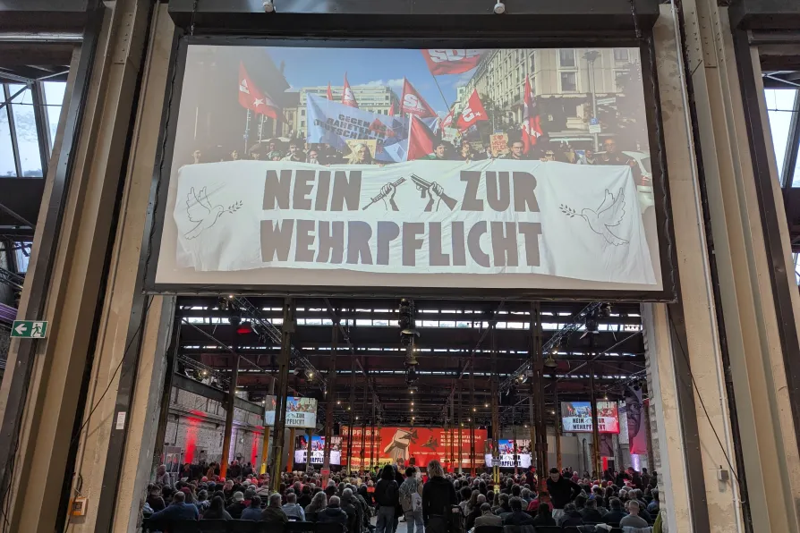 Marco Blum, of communist youth league SDAJ, said the group had organised school referendums on conscription, with schools voting four to one against it, while David Christner of Die Linke’s youth wing said militarisation was a class question.