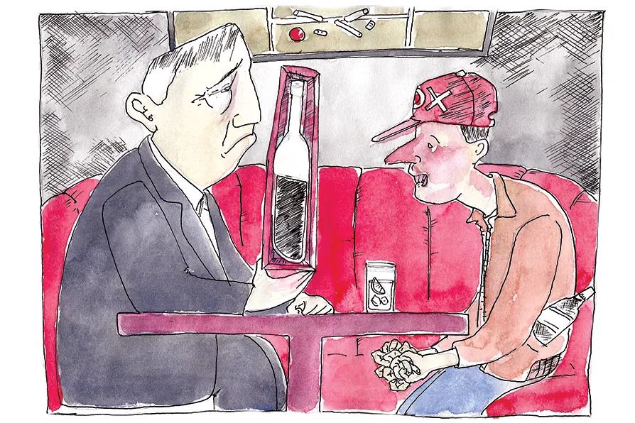 At a tragic but farcical meeting at Heathrow Terminal 3, bigotry is concealed, sporting history is recalled, and a novelty wine bottle is creatively re-purposed. By John Hawkins