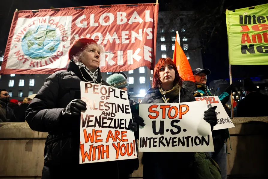 Campaigners gather for the Stop the War Coalition's 'No War On Venezuela' protest outside 10 Downing Street, London, over the US attack on Venezuela and the capture and detention of its President Nicolas Maduro by US forces, January 5, 2026