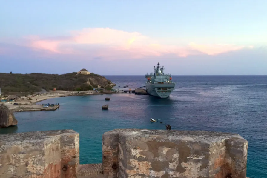 The Royal Navy's Mounts Bay docked in Curaçao, a small island just 50 miles away from Venezuela