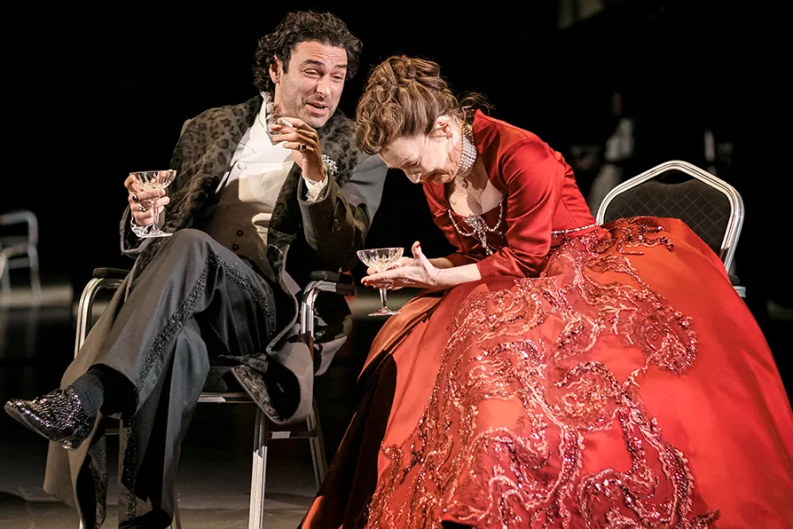 Lesley Manville carries the central role of Merteuil with all the effortless ease you would expect of this top-class actor. From her first empowered entrance in the most glorious, bejewelled crimson gown, she emanates star quality, commanding attention not only through an array of extravagant and provocative outfits but through every blink of an eyelid and curl of a finger.