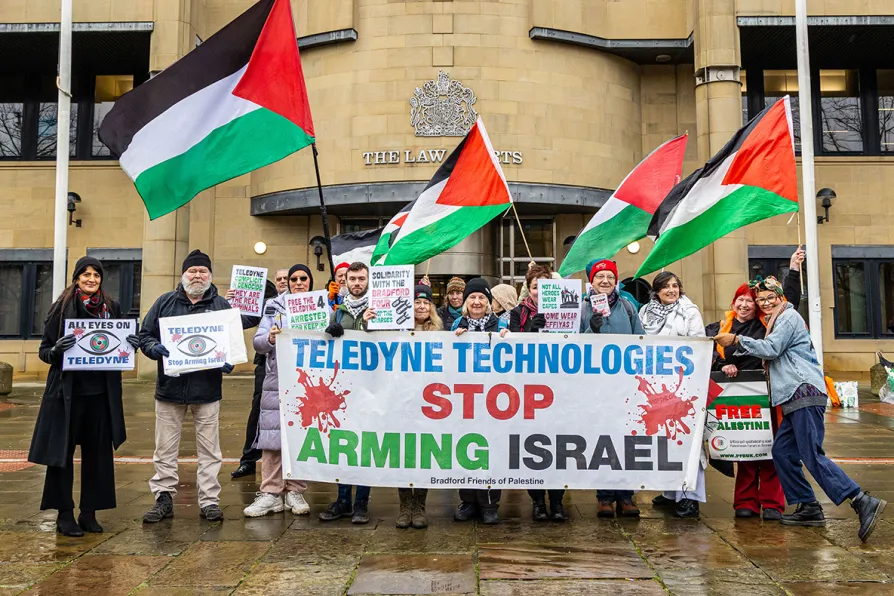 PRO-PALESTINE campaigners picketed the Bradford Crown Court in solidarity with the “Teledyne 4” today.