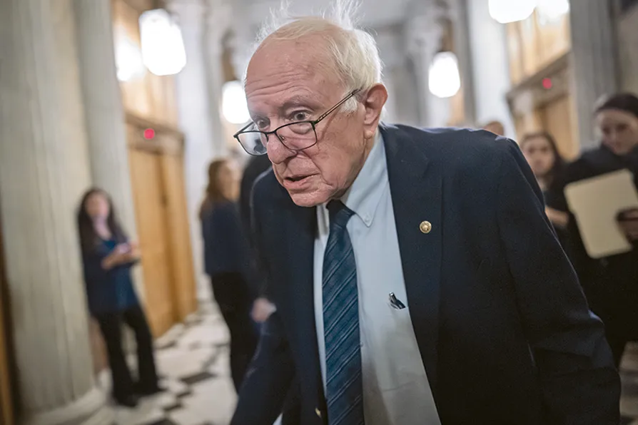A GRAVE SENSE OF URGENCY: Bernie Sanders heads to the Senate chamber at the Capitol in Washington on Monday