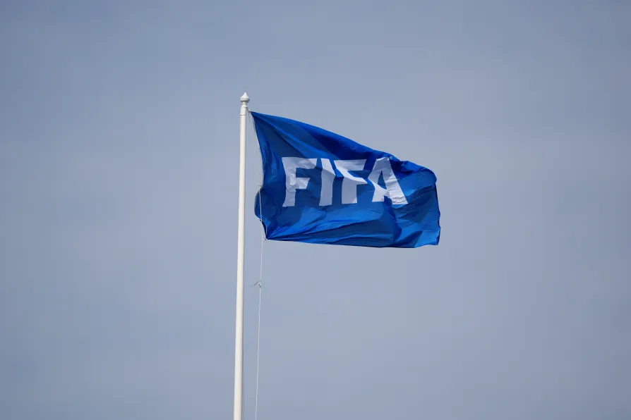 FIFA flag waves before the UEFA Women's Euro 2025 qualifying match at Firhill Stadium, Glasgow, July 16, 2024