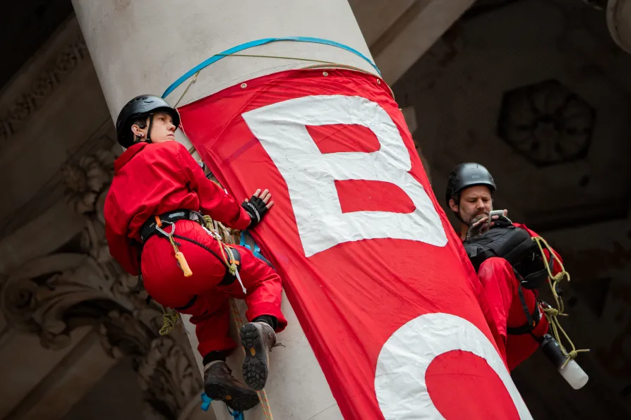 Following the dismissal, one of the climbers, Poppy, said it was “a reminder that it is not a crime to stand up against imperialist institutions backing fossil fuel devastation, the machinery of genocide and migrant detention.”