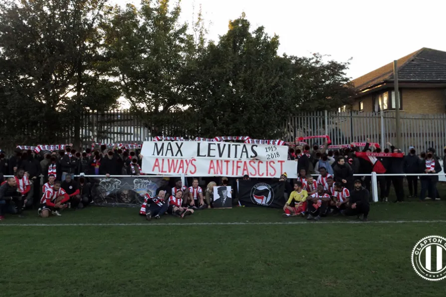 PLAYERS, staff and supporters of Clapton Community Football Club unfurled a banner commemorating the late anti-fascist and communist Max Levitas after crushing Hereford Palace 11-1 at home on Saturday.
