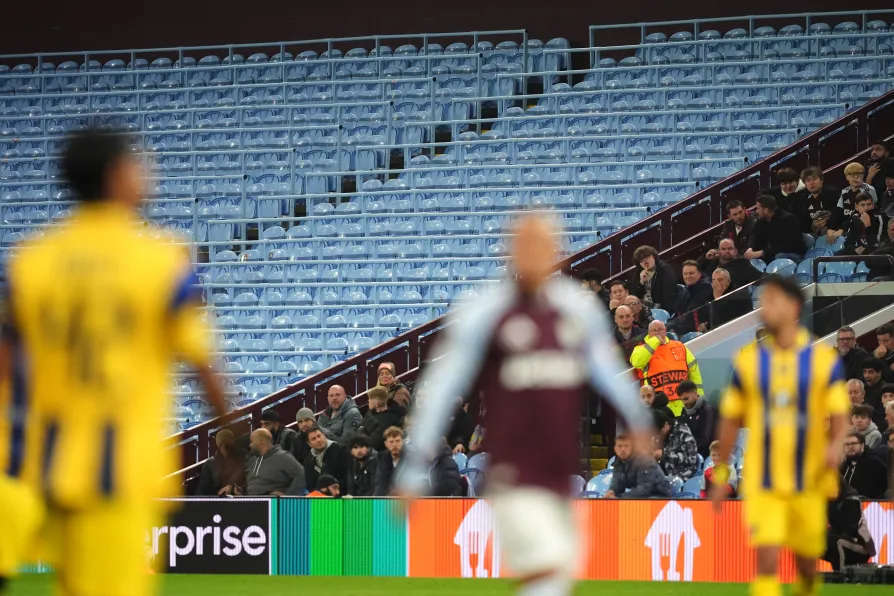 A view of empty seats in the away stand during the UEFA Europa League match at Villa Park, Birmingham, November 6, 2025