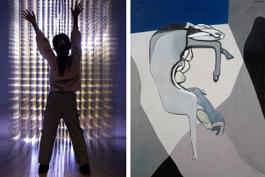MATTHEW HAWKINS contrasts the sinister enchantments of an AI infused interactive exhibition with the intimacies disclosed by two real artists