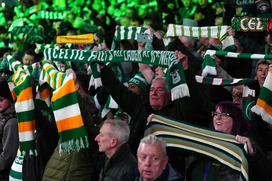 Celtic fans in the stands during the Uefa Europa League match at Celtic Park, Glasgow, October 23, 2025