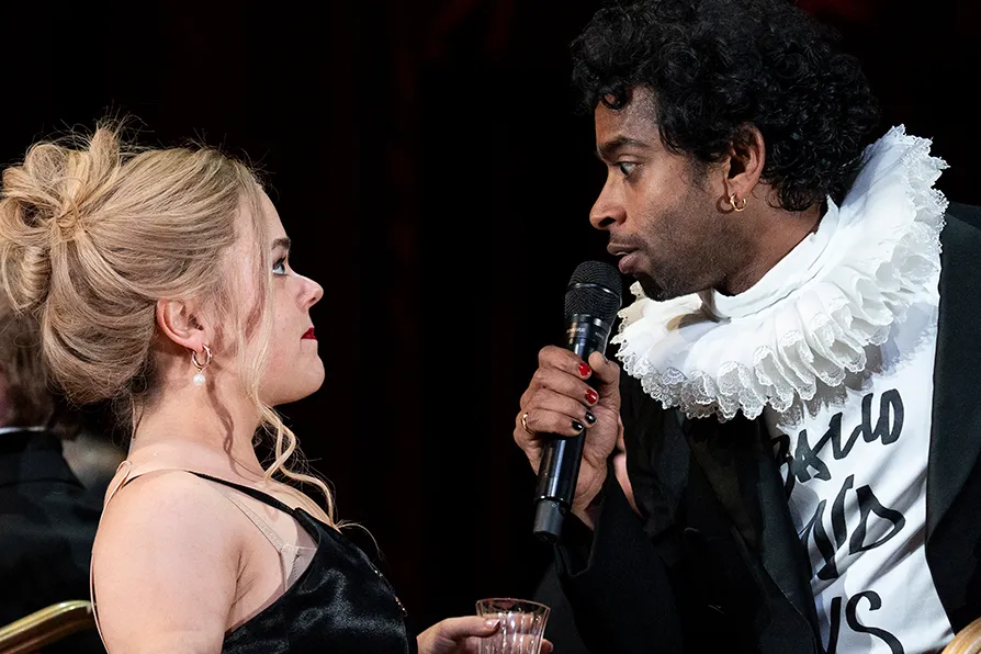 Hiran Abeysekera, in the title role, dives rapidly from champagne-quaffing slick man to fraying motormouth in convincing fashion, although there are moments in the first half where the verse is spoken at such frenzied pace that it’s hard to decipher.