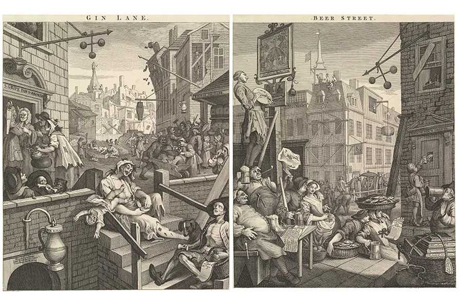 IN 1751, the English painter William Hogarth created a nightmarish depiction of the London slum of St Giles. The familiar spire of the parish church towered over a scene of human ruin. This is Gin Lane, an imagined thoroughfare where the consumption of gin has deprived the inhabitants of sense, finances – and in some instances life.