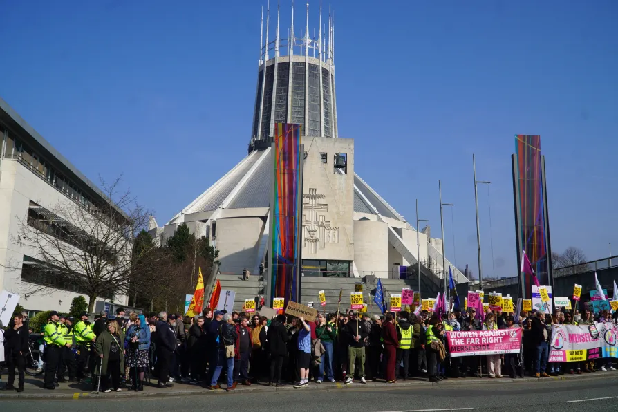A FAR-RIGHT rally held outside Liverpool Metropolitan Cathedral against the church’s wishes was surrounded by hundreds of counter-protesters on Saturday.