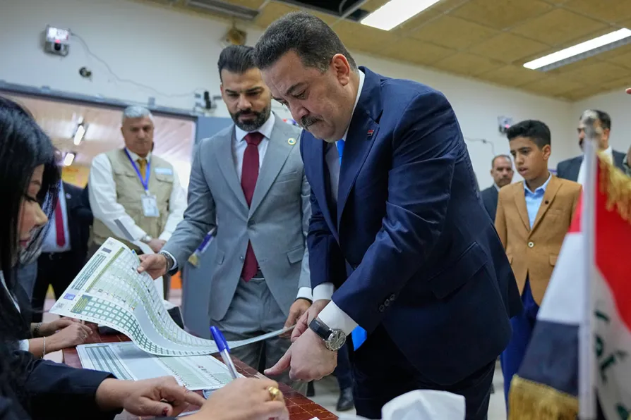 Iraqi Prime Minister Mohammed Shia al-Sudani his vote in the country's parliamentary election in Baghdad, Iraq, November 11, 2025