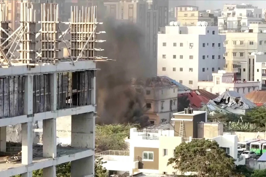 Smoke fills the sky as explosions and heavy gunfire erupted near Somalia’s presidential palace in an attack by a militant group in Mogadishu, Somalia, October 4, 2025