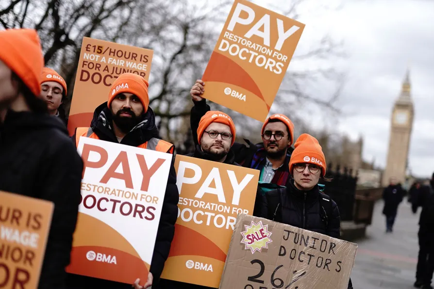 Junior doctors on the picket line outside St Thomas' Hospital, central London, during their continuing dispute over pay, February 26, 2024
