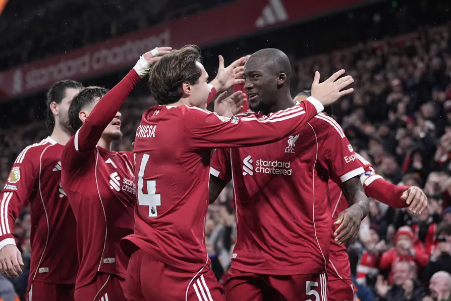 Liverpool's Ibrahima Konate celebrates scoring their side's fourth goal of the game during the Premier League match at Anfield, Liverpool, January 31, 2026