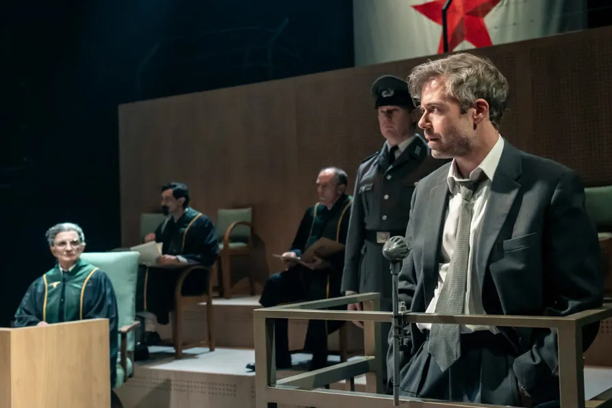 Its impressively adaptable new auditorium offers an in-the-round layout for this production, which sometimes leads to difficulties in accessing crystal-clear hearing. But the large, flexible space that’s been created as a result helps to swing the action seamlessly between London and East Berlin during the height of East-West tensions in 1961.