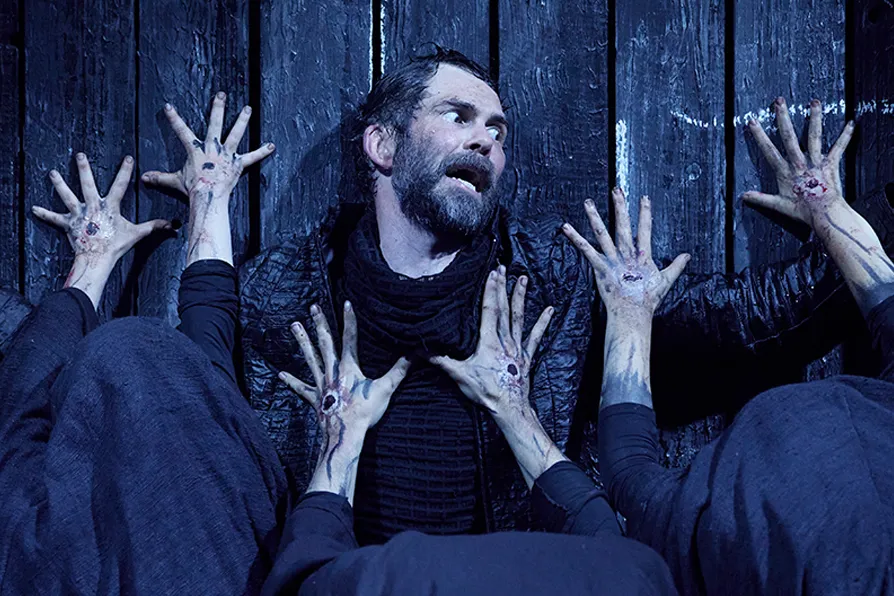 At the heart of this production are two magnificent performances. Marty Rea’s Macbeth captures the character’s descent from conflicted thane into ruthless tyrant with breathtaking force. His performance is energetic, inventive and fully convincing. He uses the entire stage in his appearances, deploying a wide physical and emotional range.