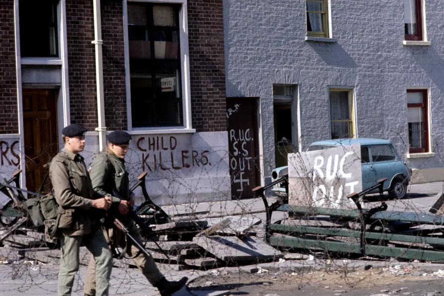 British soldiers at a street barricade in 1969