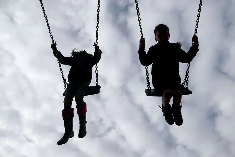 Children playing on swings in a park