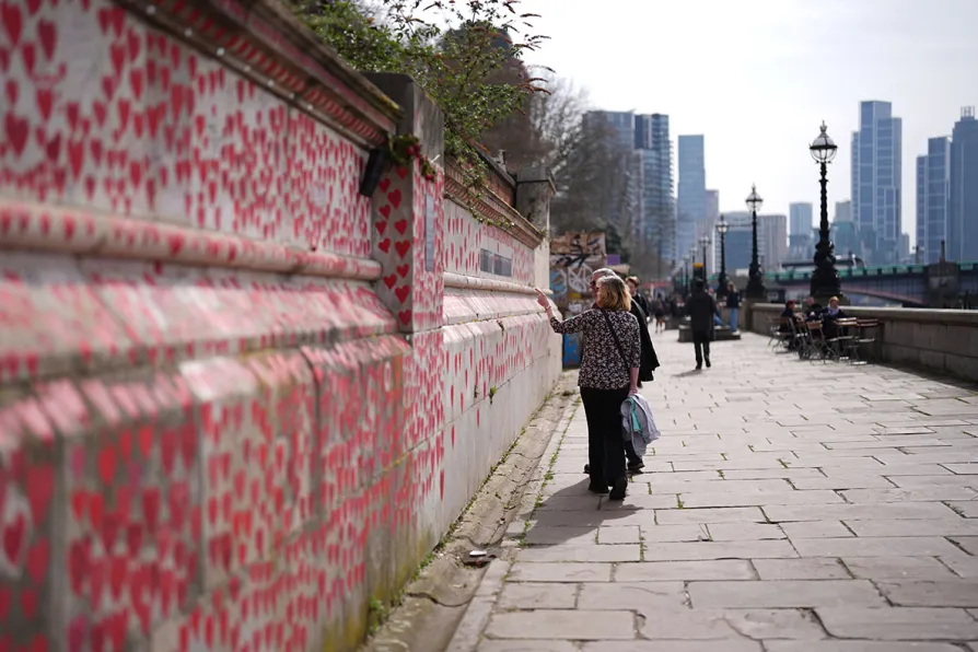 People look at the Covid Memorial Wall, central London, ahead of the fifth anniversary of lockdown, March 21, 2025