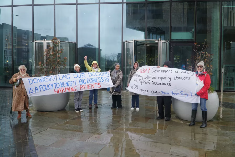 Protesters condemn replacing doctors with physicians associates and the ‘Americanisation’ of health