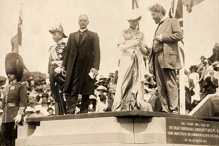 Andrew Fisher and King O'Malley (bearded), minister for home affairs, at the naming of Canberra in 1913 / Pic: Public domain