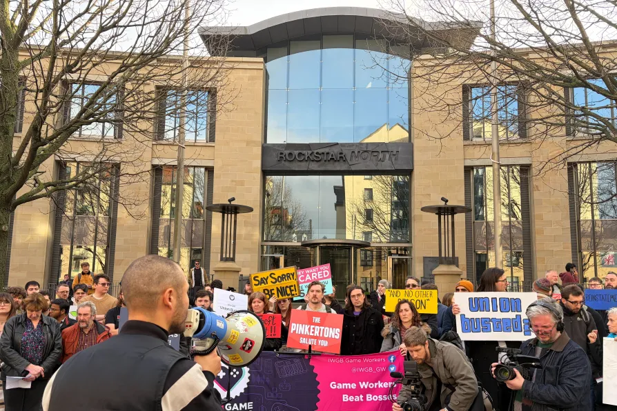 MORE than 200 trade unionists and community activists picketed Rockstar Games in Edinburgh today in solidarity with 30 workers sacked for joining a union.