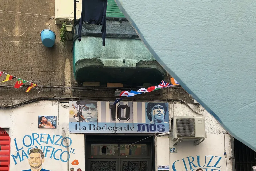 VIVA MARADONA: A photo of the Spanish Quarter in Napoli which ‘has become a bit of a shrine to Diego’ [Stewart McGill]