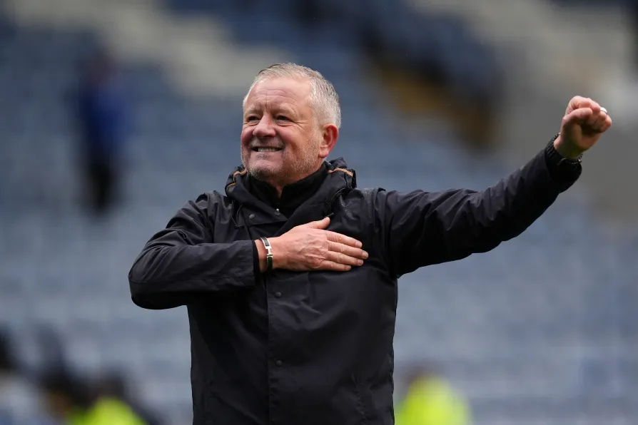 Sheffield United manager Chris Wilder celebrates the win after the Sky Bet Championship match at Hillsborough Stadium, Sheffield, November 23, 2025