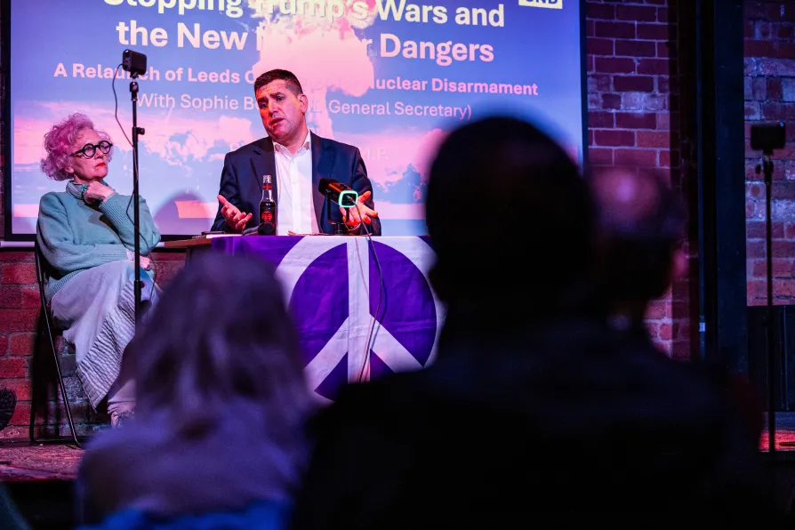 Sophie Bolt and Richard Burgon speaking at the Leeds CND relaunch event. Photo: Neil Terry Photography