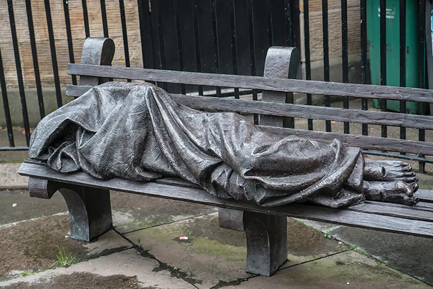 ART TAKES A STAND: The Homeless Jesus bronze statue in Glasgow, located at Nelson Mandela Place near St George's Tron Church, was created by Canadian sculptor Timothy Schmalz and installed in December 2017 [Pic: Brian Deegan/Creative Commons]