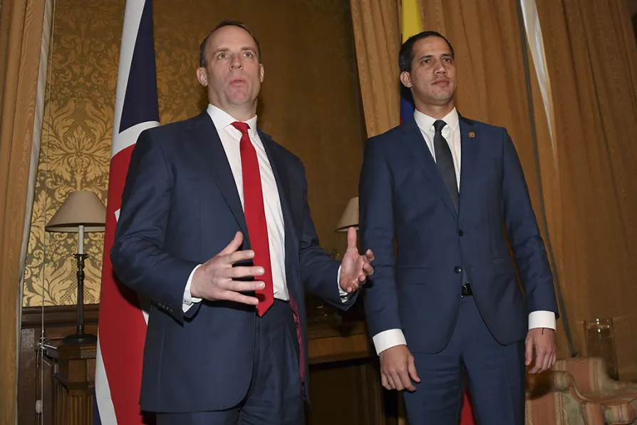 Foreign Secretary Dominic Raab meeting Venezuela's self-appointed ‘interim leader’ Juan Guaido at Foreign Office in London for talks in January