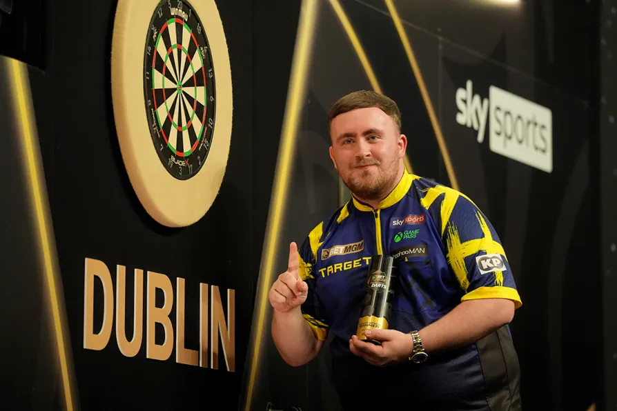 Luke Littler celebrates after winning the final against Gerwyn Price on night seven of the Premier League 2026 at the Dublin Arena, Ireland, March 19, 2026