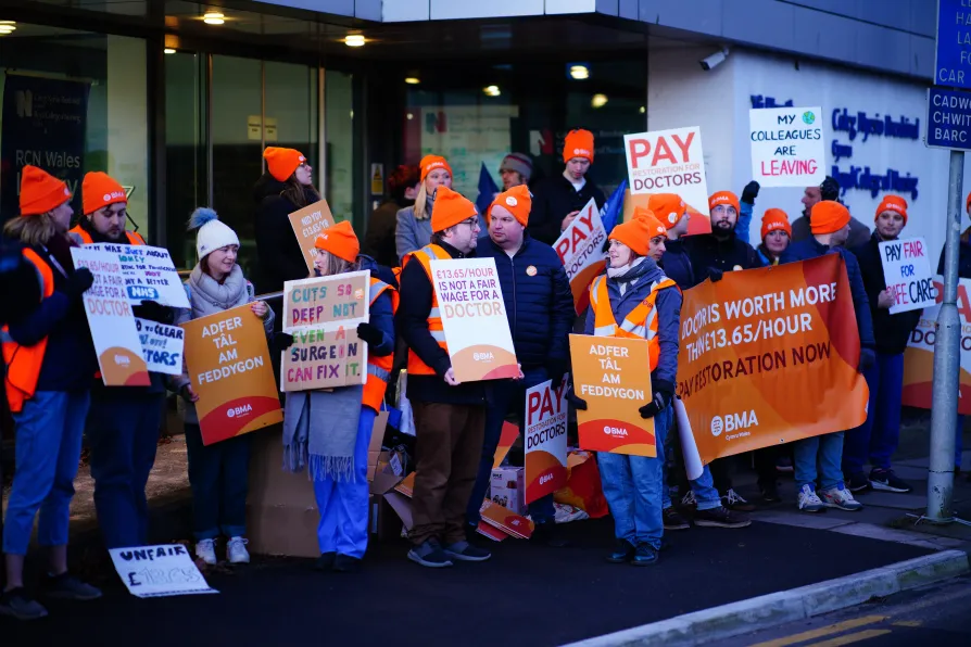 Thousands of medics walked out after the British Medical Association (BMA) rejected a 5 per cent pay offer from the Welsh government.
