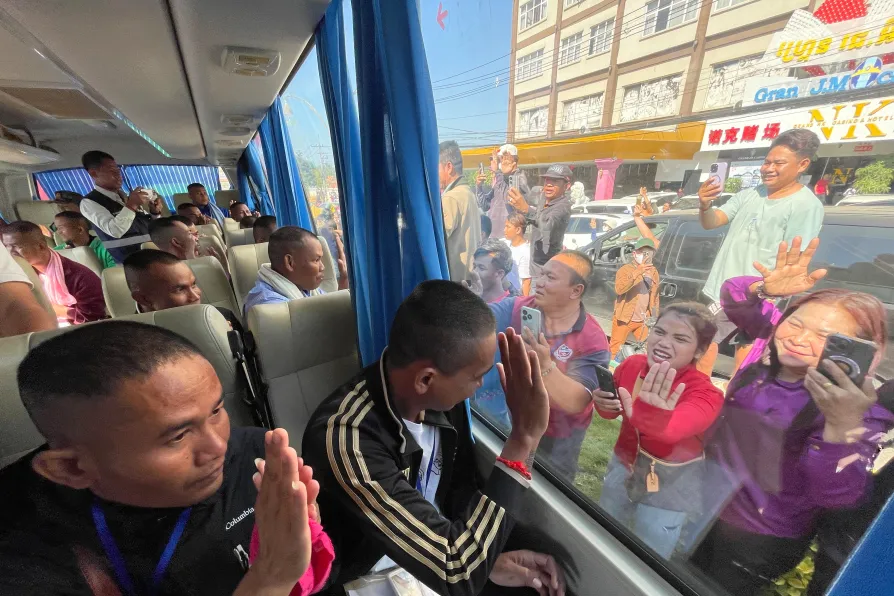 Cambodian soldiers are welcomed by villagers upon their arrival at Prum border gate, in Pailin province, Cambodia after being captured and held by Thailand, December 31, 2025