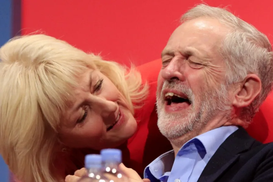 Unite's Jennie Formby shares a joke with Jeremy Corbyn back in 2015