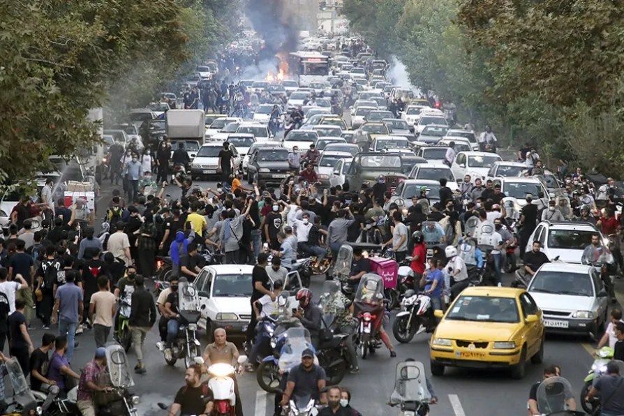 An earlier protest over the death of Mahsa Amini in downtown Tehran, Iran, September 21, 2022