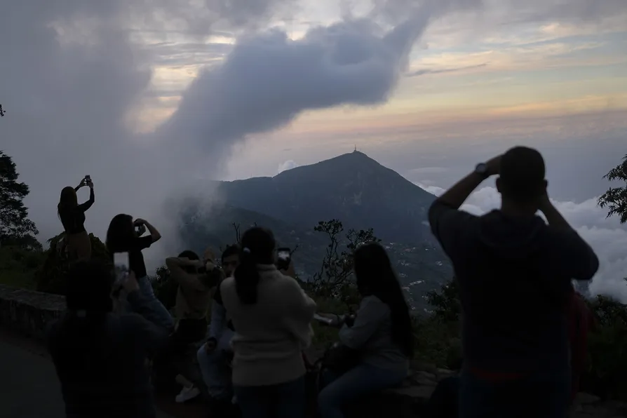 People take photos of the sunset from the top of the El Avila mountain, in La Guaira, Venezuela