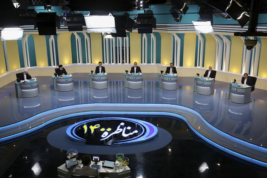 Presidential candidates participate in a televised debate in a state-run television studio, in Tehran, Iran