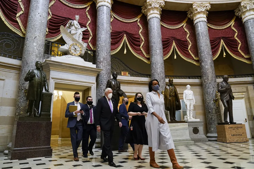 Mr Trump was on the verge of being impeached for a second time in an unprecedented House vote, a week after he encouraged a mob of loyalists to “fight like hell” against election results just before they stormed the Washington’s Capitol building in a deadly siege.