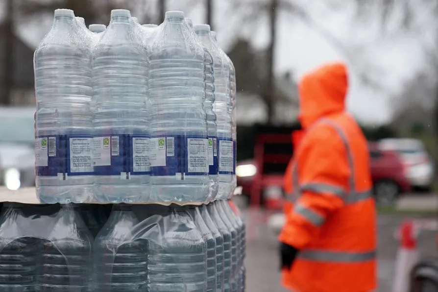 South East Water staff hand out bottled water at a water station in Maidstone, after bad weather was blamed for more water outages in Kent and parts of Sussex, January 13, 2026
