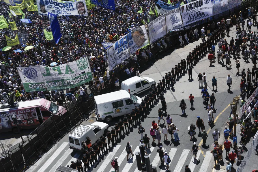 Workers across Argentina stage 24-hour walkout against president's anti-strike legislation