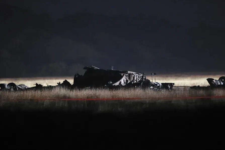 Debris is seen at a crash site of a Turkish military cargo plane in Georgia's Sighnaghi municipality, close to the Azerbaijani border on November 12, 2025