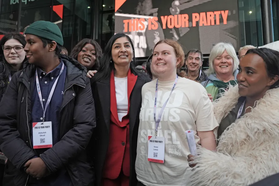 Zarah Sultana (centre) with party members outside the ACC Liverpool, during the Your Party founding conference, November 29, 2025