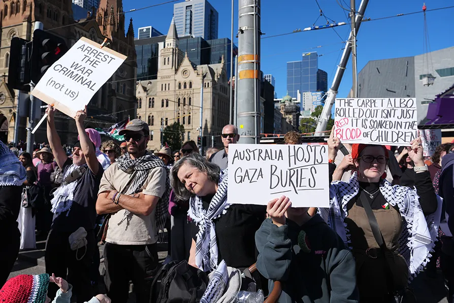It’s not often that a TV series spills directly into the headlines, but the New South Wales Police force, from which Peter and Vanessa retired, is in the news for the brutality with which they assaulted demonstrators during a rally to protest against the royal treatment accorded by the Australian government to the President of Israel Isaac Herzog, accused of perpetrating genocide.