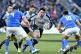 Ireland's James Lowe (centre) is tackled by Italy's Alessandro Fusco (centre left) and Louis Lynagh during the Guinness Men's Six Nations match at the Aviva Stadium, Dublin, February 14, 2026